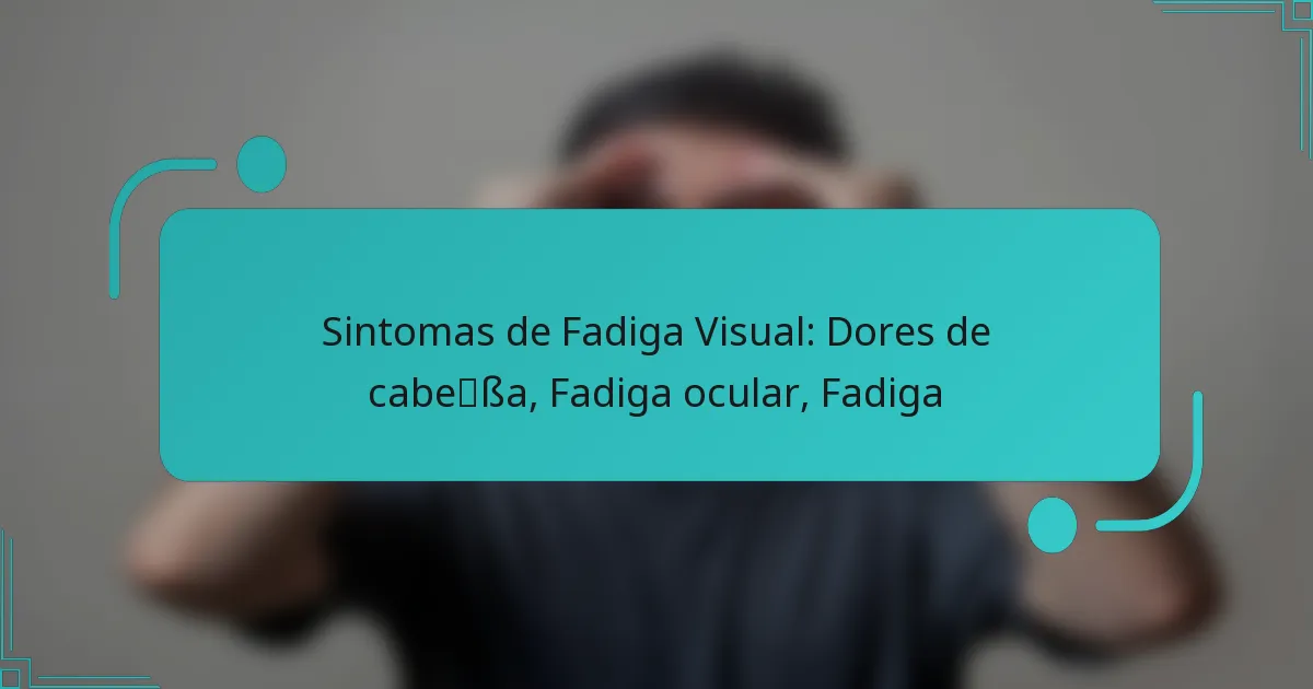 A fadiga proveniente da tensão ocular pode manifestar-se como cansaço geral ou falta de energia. Esse tipo de fadiga resulta frequentemente da concentração prolongada em telas sem descanso adequado.